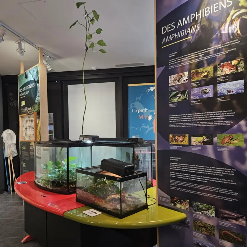 Découvrez un univers captivant où insectes flamboyants, reptiles intrigants et amphibiens surprenants se dévoilent sous vos yeux. Le Vivarium met en lumière des espèces du Québec et d’ailleurs, des spécimens naturalisés et fossilisés, ainsi que des créatures bien vivantes : couleuvres, rainettes, mygales, salamandres et bien d’autres encore!